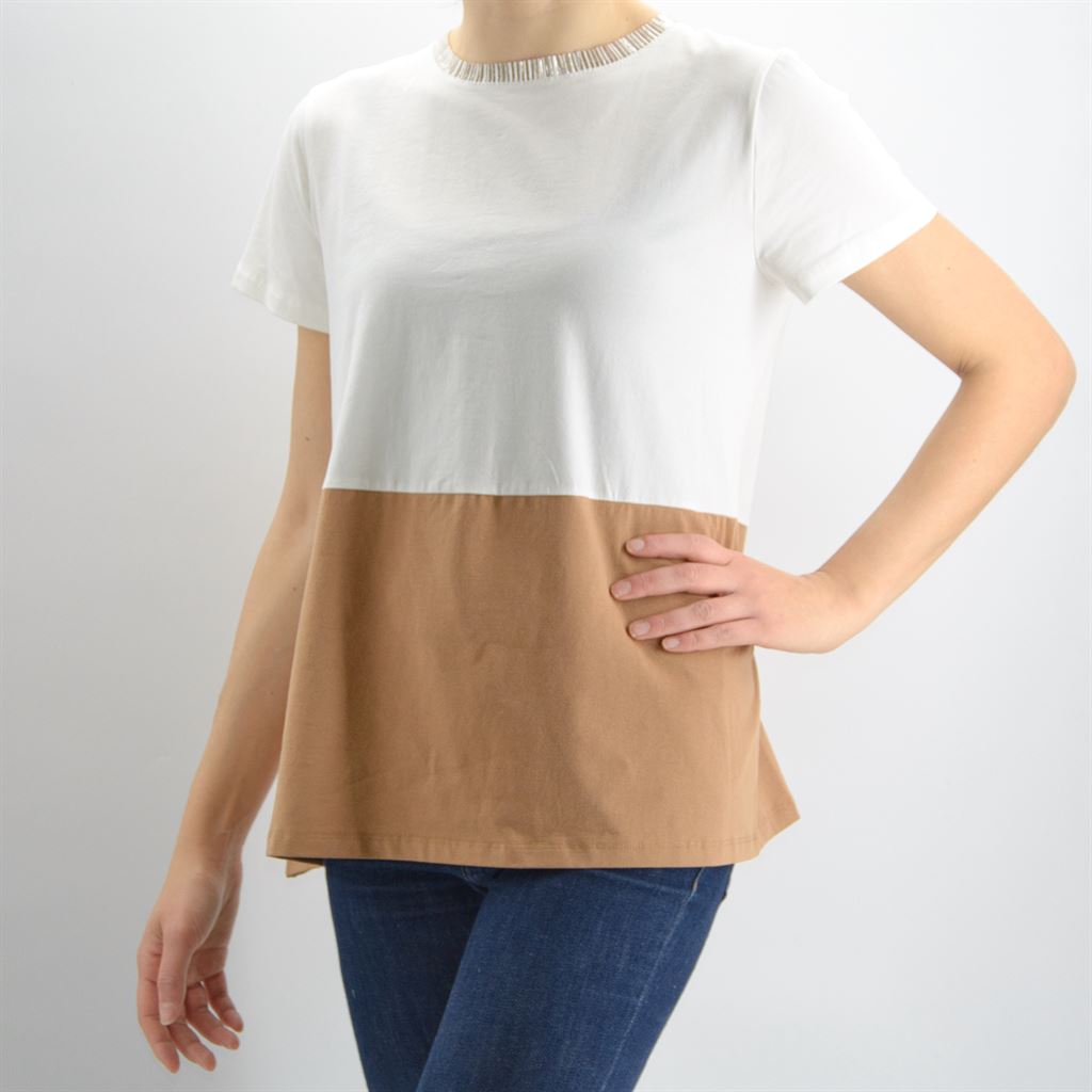 Maglia tinta unita nera con stampa celebrations, perline dettaglio moda. L’ apertura sulla schiena evidenzia la maglia in mini plissè tono su tono. Maniche lunghe. Materiale: 90% Viscosa 10% Elastane.
